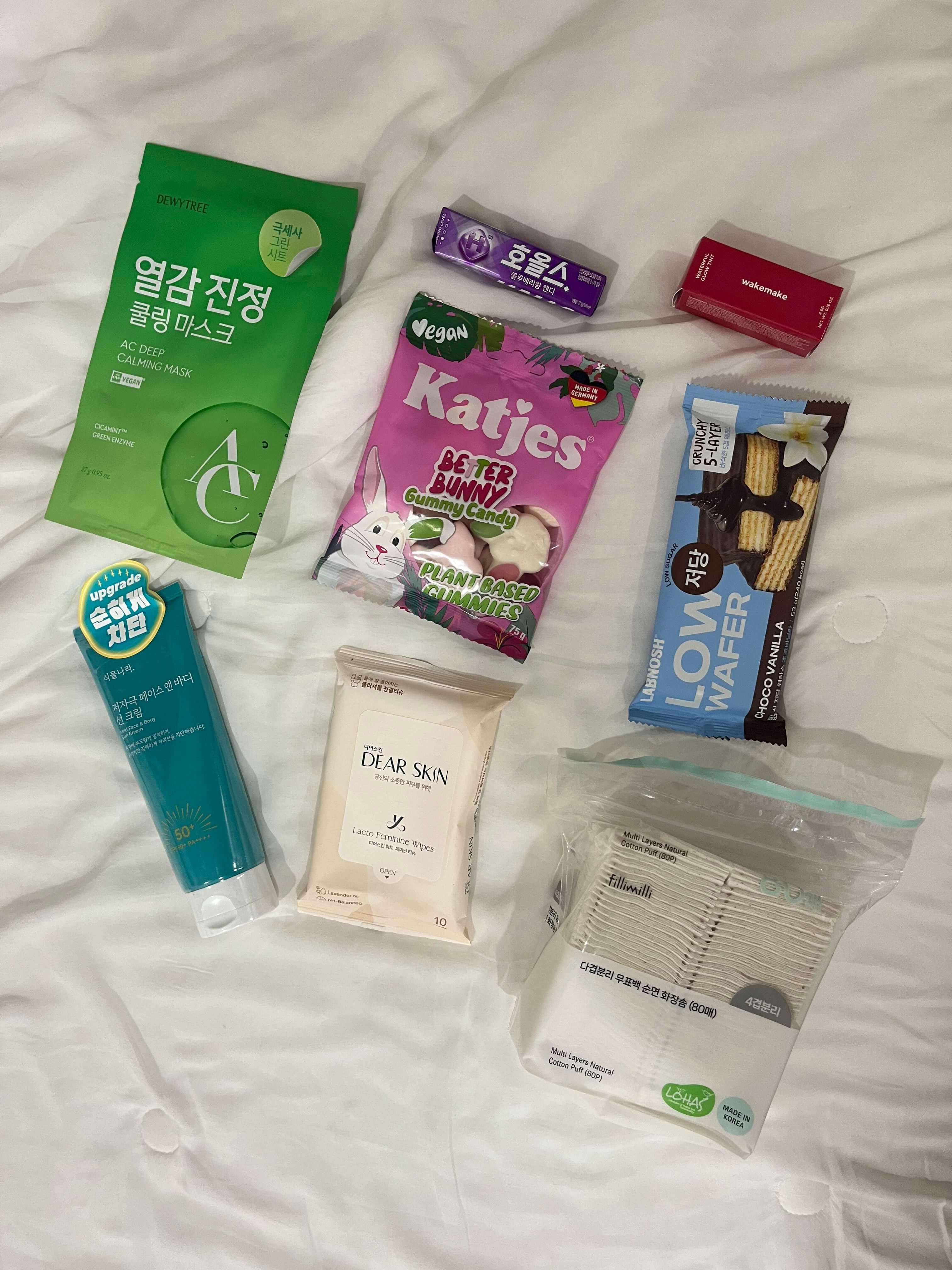 화장품 5종, 간식 3종으로 알차게 구성되었네요!