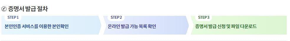 발급을 위해 간편 인증서 혹은 공동인증서를 위한 본인인증이 필요합니다.