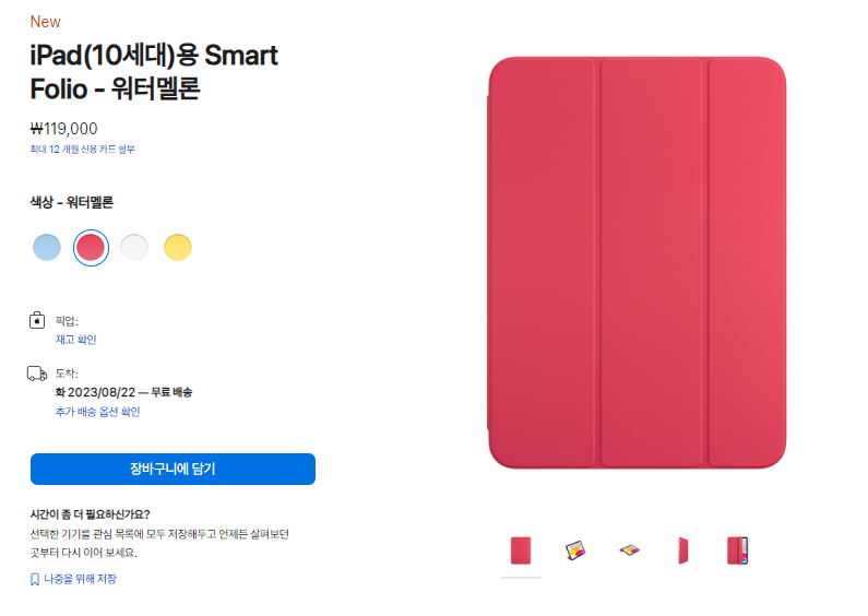 아이패드 전용 커버인 smart Folio 가 아이패드에 맞춰 여러가지 색상이 있습니다.