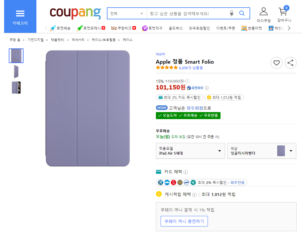 쿠팡에서 검색해보니 아이패드가 어쩐지 핑크색상이 그레이보다 조금 비싸요. 더 인기가 많아서 일까요?