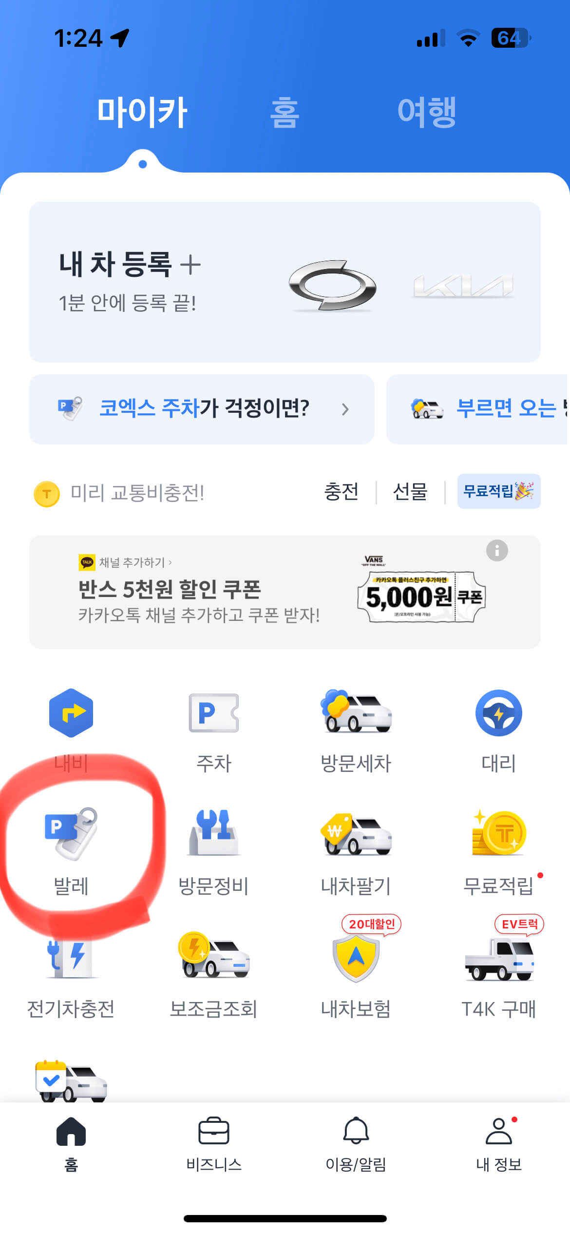 이용권을 클릭하여 출차요청 버튼을 누르면 주차요원분이 차를 인수했던 장소로 가져다 줍니다.