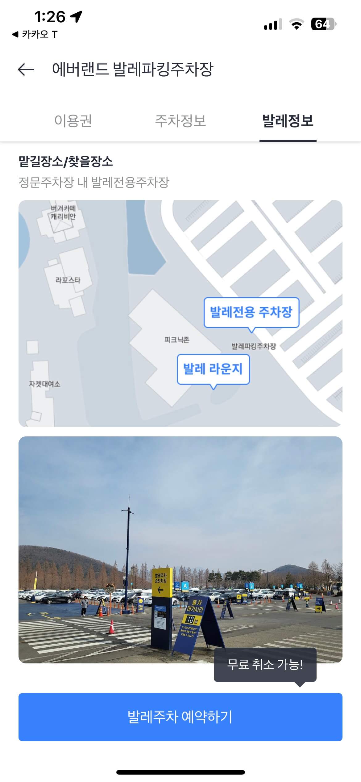 발렛파킹으로 주차하신다면 블루주차장에 주차되며 매표소에서 가장 가까운 위치입니다.