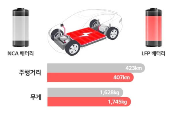 삼원계 NCA 배터리의 장점- 에너지 밀도가 높아 주행거리가 길다 (연비가 좋다) - 충전 속도가 빠르다. - LFP 배터리보다 가볍다. |
