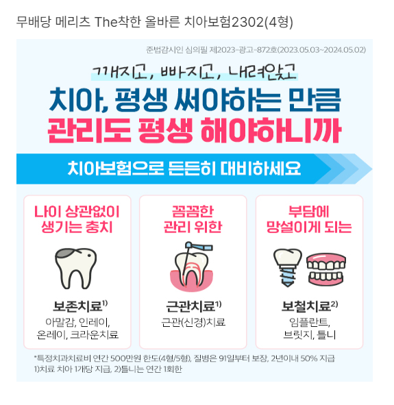평소 이가 좋지 않거나 유전적으로 이가 약하다면 보험가입을 고민해 보는 것이 유리할 수 있습니다.