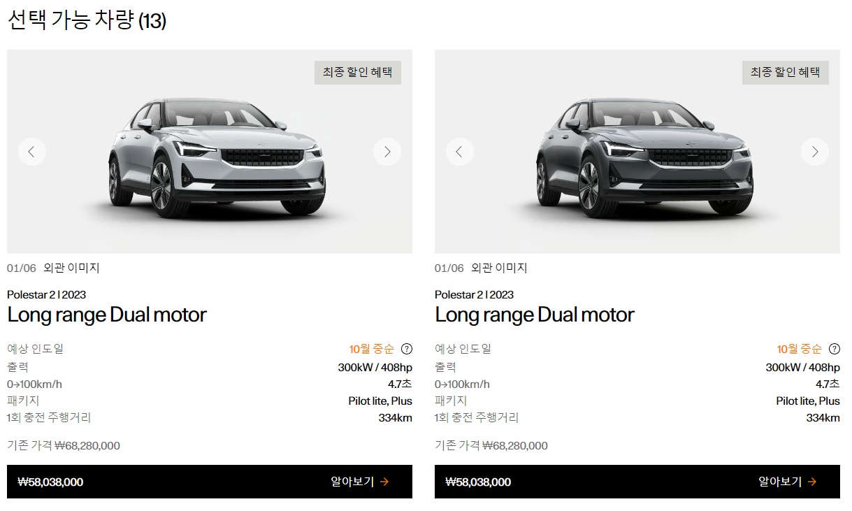 24년형 모델이 출시되면서 23년형 폴스타2 모델을 할인하기 시작했는데요