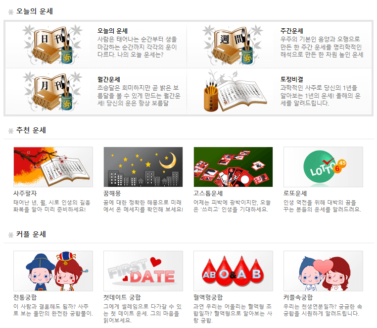 뽐뿌 사이트에서는 꽤 다양한 운세를 무료로 제공하고 있습니다.