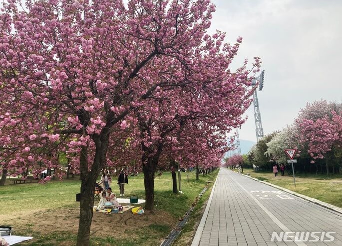 넓은 잔디밭과 벚꽃길이 어우러져 피크닉을 즐기기 좋고
